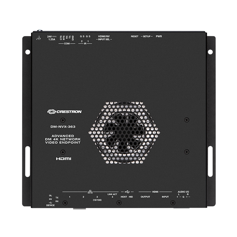 DM-NVX-363,DM NVX? 4K60 4:4:4 HDR 網(wǎng)絡(luò) AV 編碼器/解碼器,帶縮混和 Dante? 音頻,一種可靠、高性能的 AV over IP 編碼器或解碼器,可通過標(biāo)準(zhǔn)千兆以太網(wǎng)傳輸 4K60 4:4:4 視頻,沒有明顯的延遲或質(zhì)量損失。 支持 HDR(高動(dòng)態(tài)范圍)和 HDCP 2.3,具有內(nèi)置縮放和視頻墻處理、自適應(yīng)比特率、環(huán)繞聲到立體聲縮混、原生 Dante? 或 AES67 傳輸和接收功能、USB 和 KVM 路由以及可選的光纖連接。 為企業(yè)和校園范圍的內(nèi)容分發(fā)應(yīng)用程序提供安全、可擴(kuò)展的 4K 信號(hào)路由解決方案。